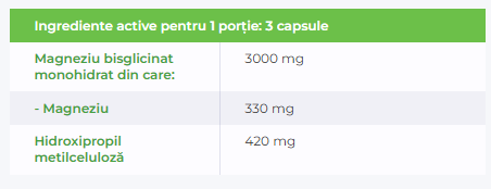 – Magneziu bisglicinat monohidrat (1000 mg/ capsulă)