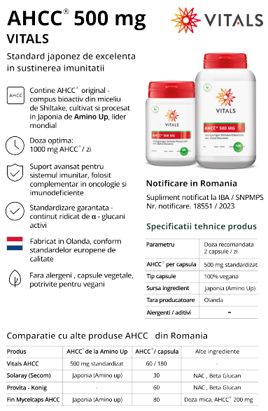 • AHCC® este o marca inregistrata a Amino Up Co., Ltd. Japonia