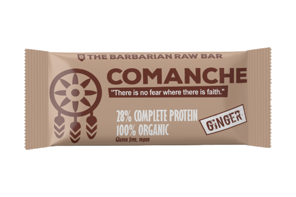 Proteine baton/gustare cu ghimbir COMACHE Batonul proteic cu ghimbir are o valoare nutritivă de calitate, contribuind la o mai bună starea a sănătății.Gustul său perfect este creat de ingrediente naturale, fiind un produs fără gluten, vegan, 82% crud, făcut cu sirop de agave.