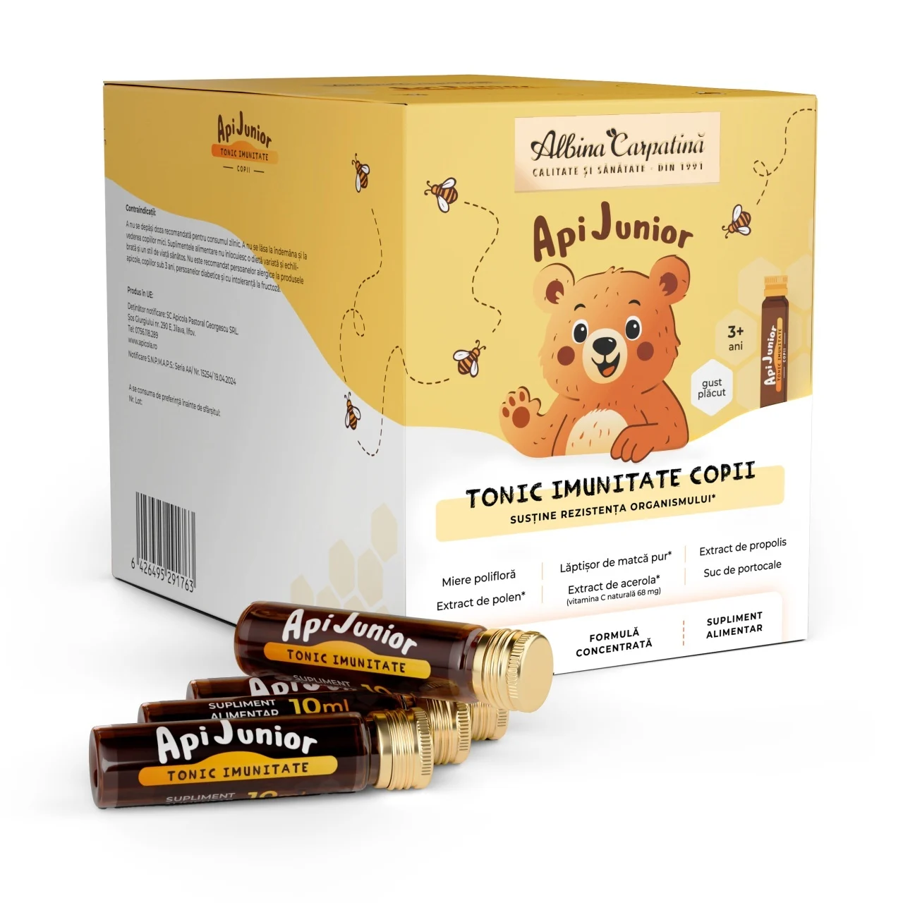 Este o combinatie cu gust delicios pentru copii ale celor mai valoroase produse ale stupului: laptisorul de matca, propolisul, polenul, mierea poliflora cu extractul de acerola bogat in vitamina C naturala si suc de portocale.