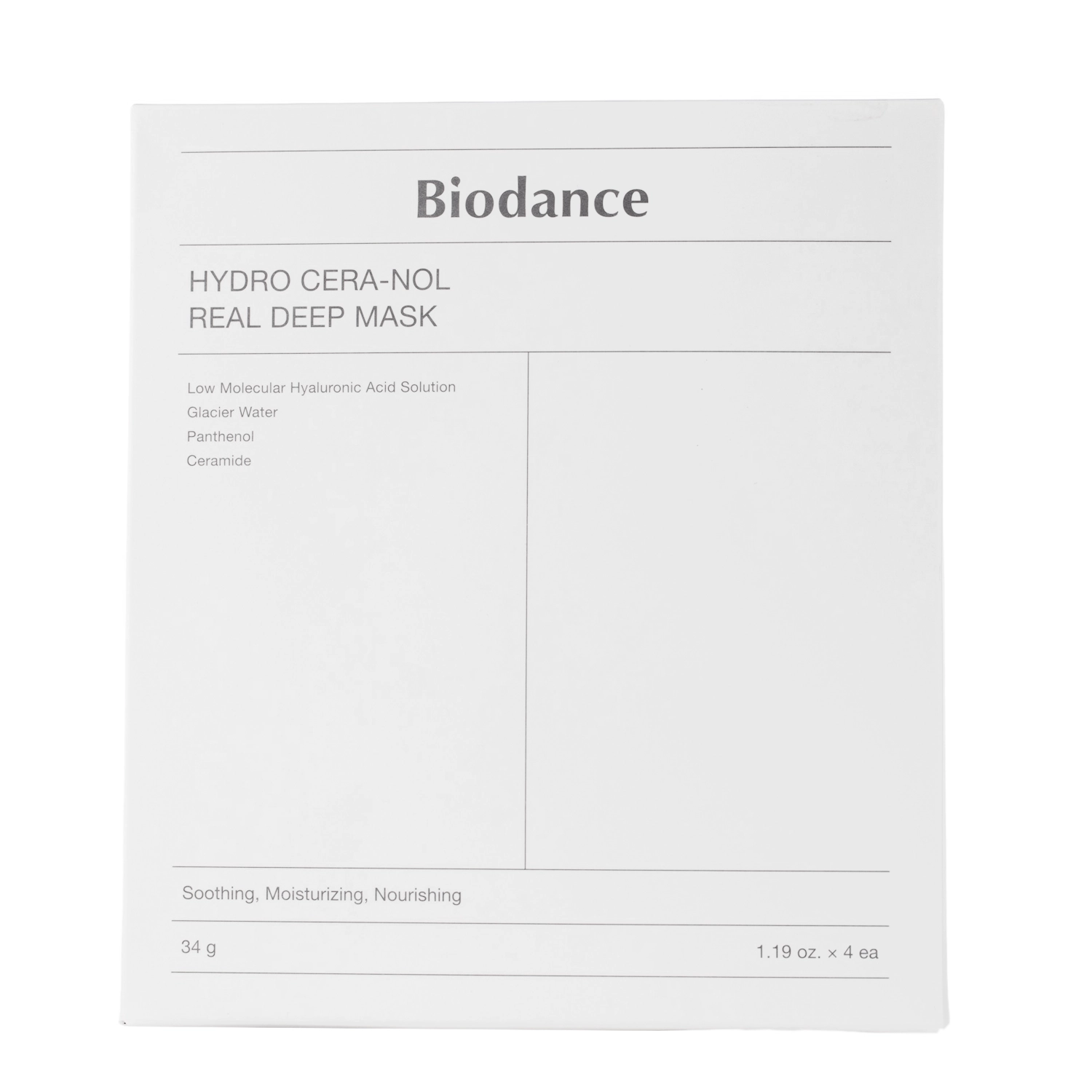 Biodance - Hydro Cera-nol Real Deep Mask Set este un set format din 4 măști faciale hidrogel, fiecare având structură în două părți (pentru zona superioară și inferioară a feței). Sunt concepute pentru utilizare peste noapte sau minimum 3–4 ore, pentru hidratare profundă și îmbunătățirea elasticității pielii.
