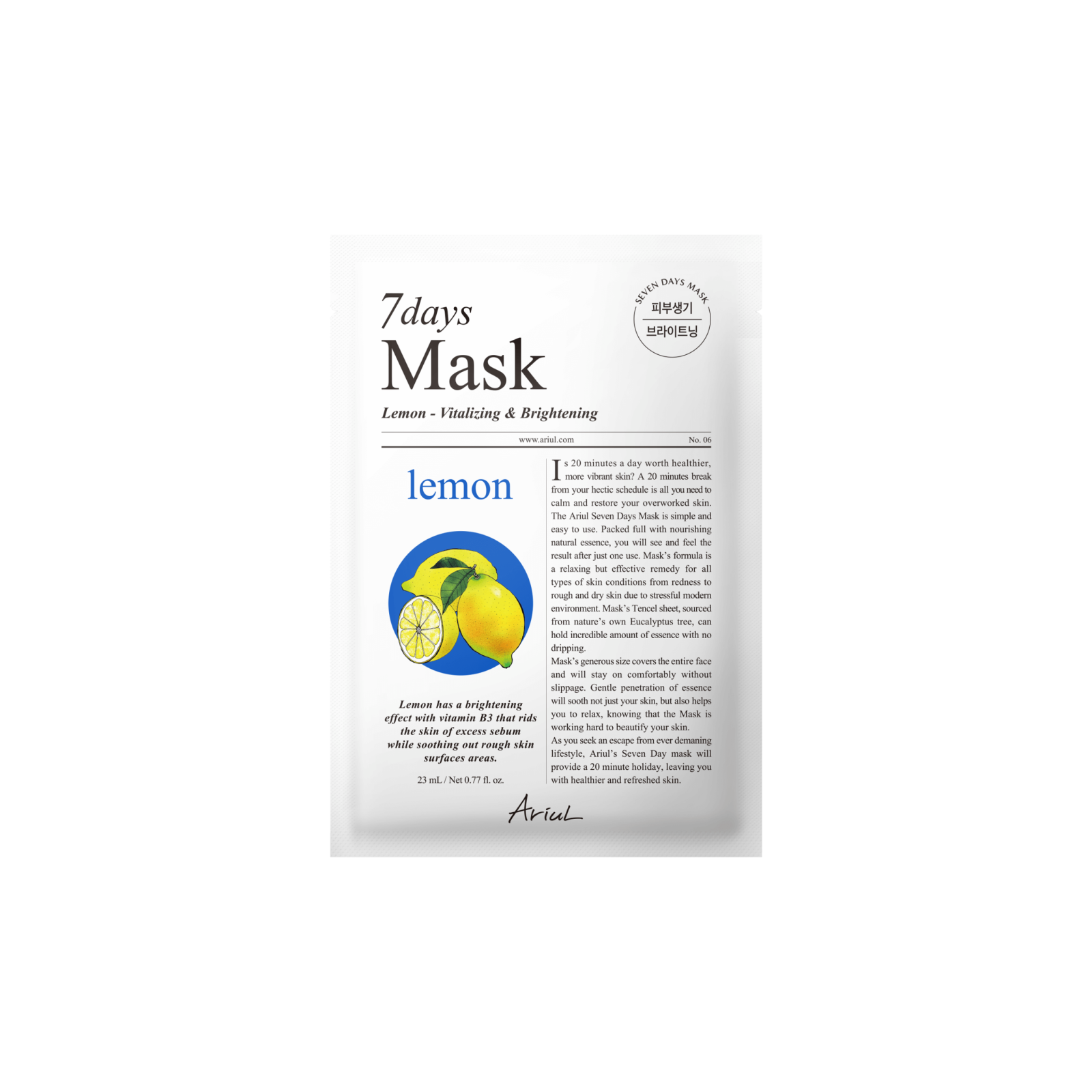 Mască Ariul 7Days PLUS Lămâie + C (Vitamina C), Luminozitate intensivă a tenului, Cosmetice coreene naturale, 23g