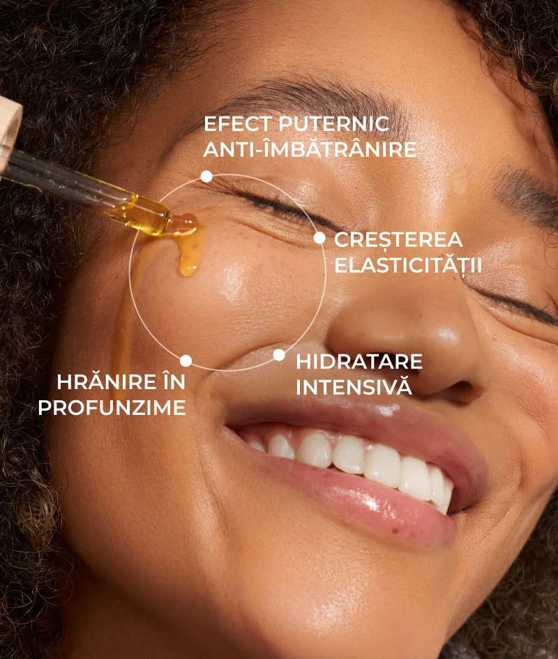 Revitalizează pielea cu o combinație bogată de vitamine și acizi grași omega esențiali. Promovează producerea de colagen, are efect anti-îmbătrânire și regenerant.