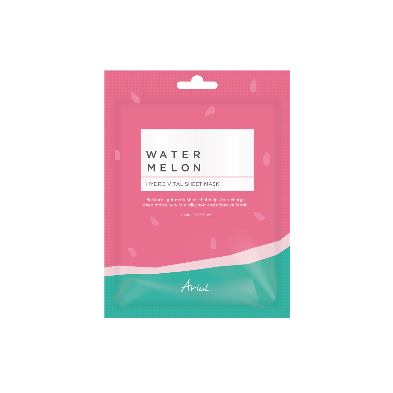 Masca compresă Ariul Watermelon Hydro Vital, cu extract de pepene roșu (10,000ppm) și triplu acid hyaluronic conferă hidratare intensă și un aspect mai tânăr tenului stresat.
