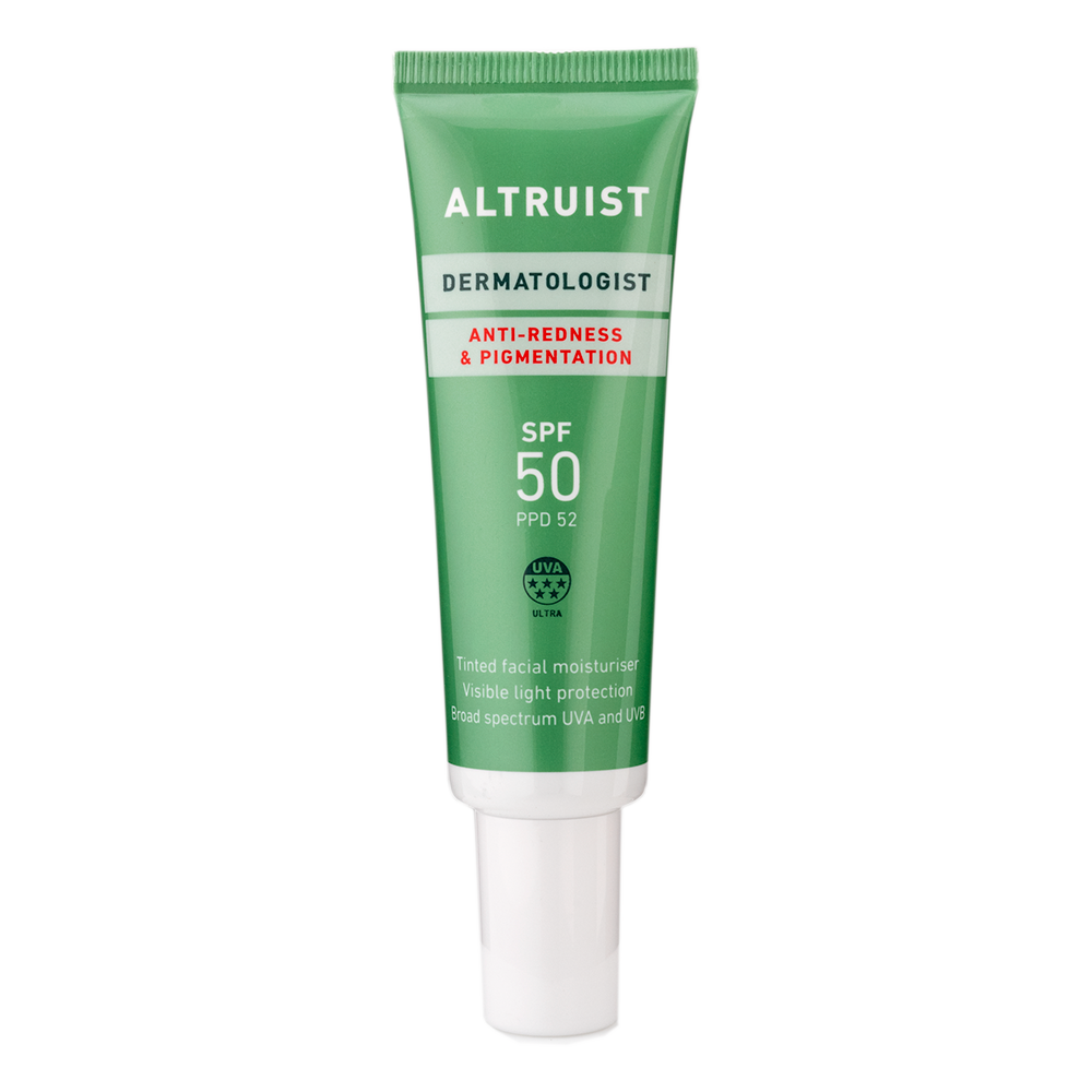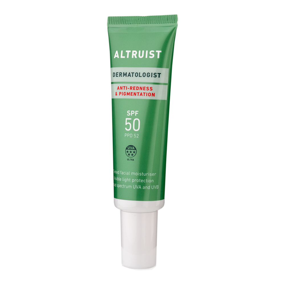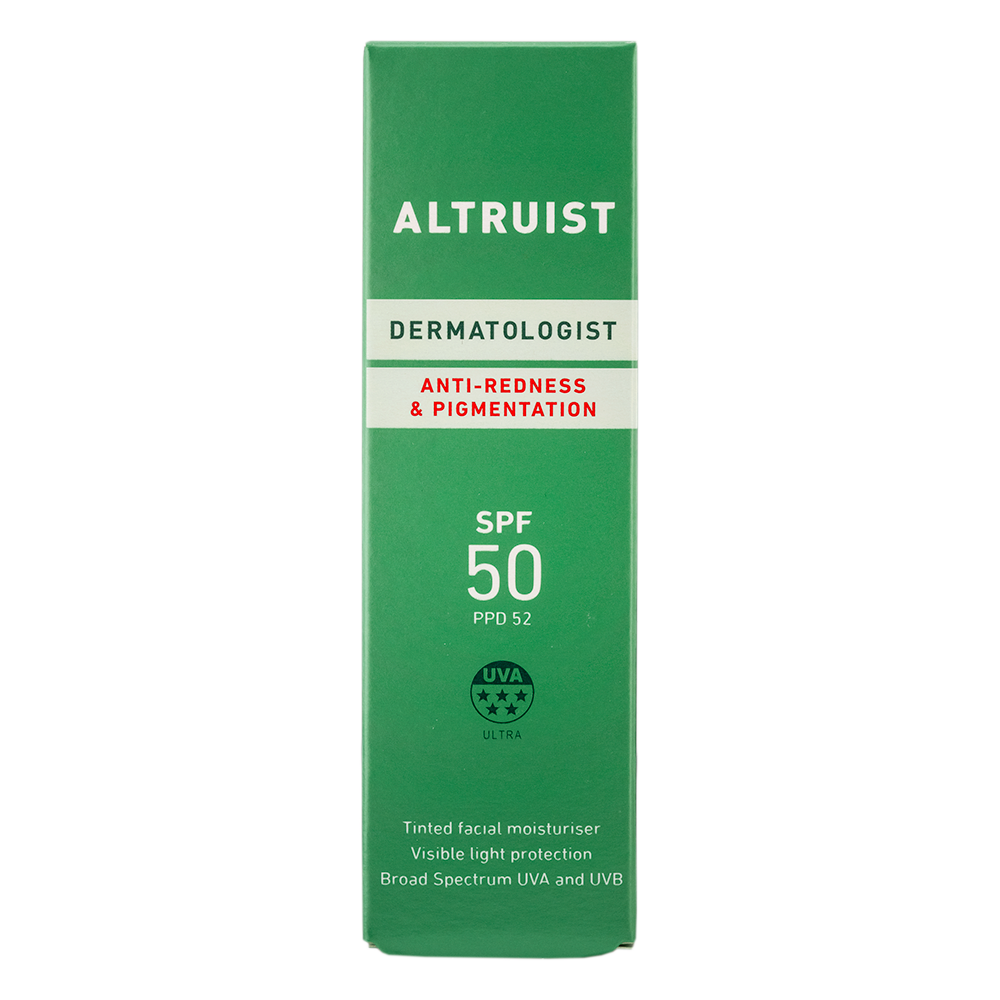 Altruist Anti Redness and Pigmentation SPF50 foloseste o tehnologie bazata pe plante combinata cu protectie UV inalta pentru a reduce roseate pielii si a elimina pigmentarea.