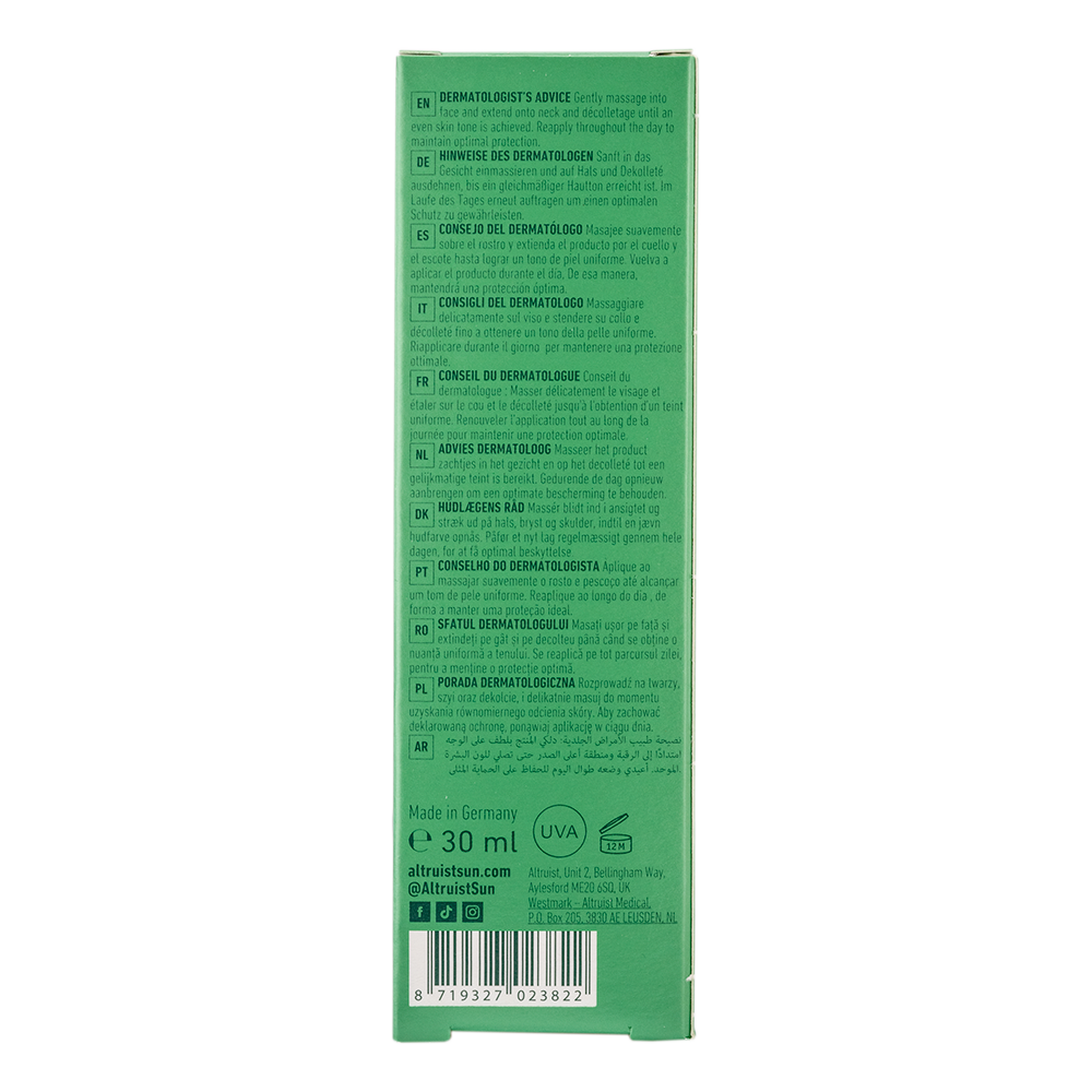 Altruist Antiredness & Pigmentation este un SPF hidratant cu protectie solara inalta, care ascunde si neutralizeaza roseata si pigmentarea, dezvoltata special pentru pielea hipersensibila.