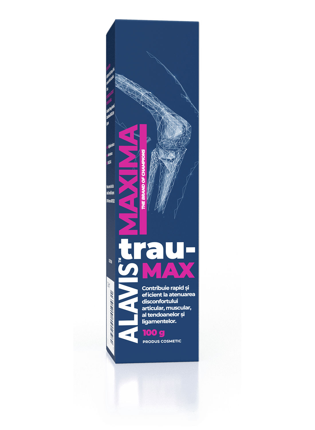 ALAVIS™ MAXIMA Trau-MAXsub forma de emulgel ușor de întins și ușor absorbabil, conține substanța brevetată Celadrin® compusă dintr-o matrice de acizi grași cetilați. Acizii grași au un efect benefic asupra compoziției lichidului sinovial și a integrității membranei sinoviale, susținând vâscozitatea lichidului sinovial, lubrifierea permanentă a cartilajului articular și protecția acestuia.Substanța brevetată Celadrin® întărește și hidratează încontinuu și în mod sistematic membranele celulare și oferă celulelor elasticitate și suplețe tinerească. Compușii cetilați au fost folosiți de mulți ani de industria farmaceutică ca substanţe detoxifiante. Conform celor mai recente cercetări clinice, această compoziție echilibrată are un efect protector și reparator. Putem rezuma că ingredientele active din formula brevetată Celadrin® acționează ca antioxidanți naturali, contribuie la normalizarea stării articulațiilor în procese inflamatorii, ajută la reducerea disconfortului, contribuie la regenerarea membranei celulare (sinoviale), protejează cartilajul articular și blochează în mod specific activitatea unor enzime nedorite.Mentolul este o substanță obținută din mentă și are un efect calmant local. Ajută la circulația sângelui la nivel tisular, efect important în procese inflamatorii și disconfort. Senzația de răcire se datorează capacității sale de a declanșa chimic receptorii de temperatură, oferind astfel ușurare atât în situații acute, cât și în cele cronicizate de la nivelul articulațiilor, mușchilor, tendoanelor și ligamentelor.