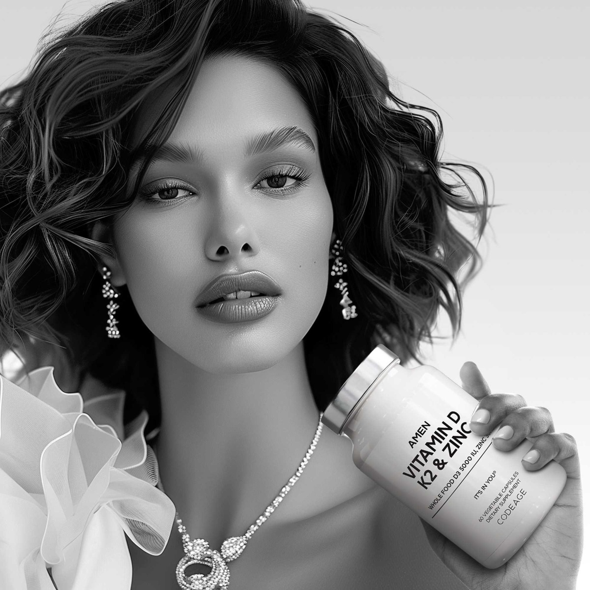 CodeAge Amen Vitamin D - K2 & Zinc - Vitamin D3, formula pentru imunitate, oase puternice si protectie cardiovasculara