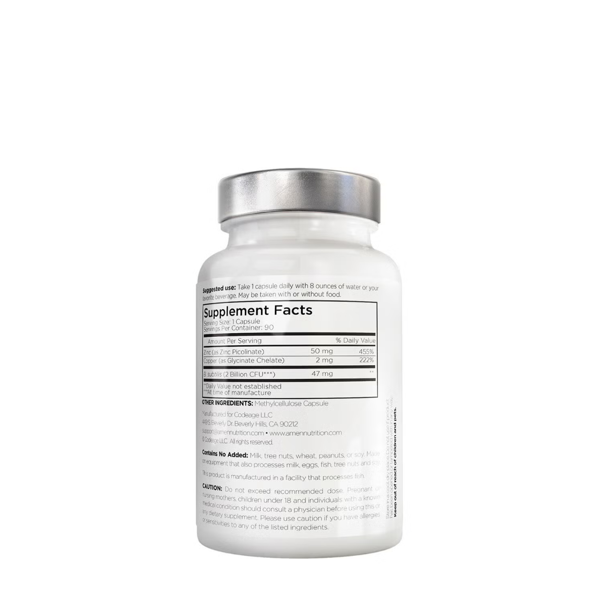 CodeAge Amen Zinc/Copper + Probiotics 2 Billion CFU, formula pentru echilibru mineral si digestie sanatoasa