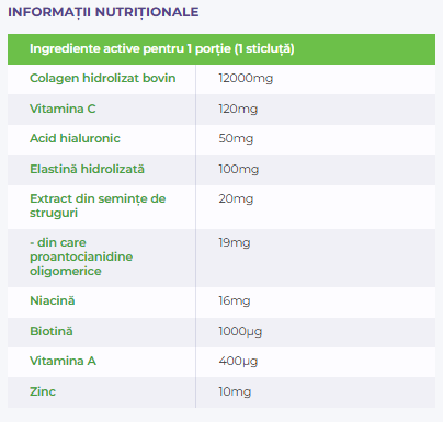 Aceasta este doza optimă pentru ca pielea, părul, unghiile și structurile interne ale organismului să beneficieze de aportul complet de colagen, elastină, acid hialuronic și antioxidanți.