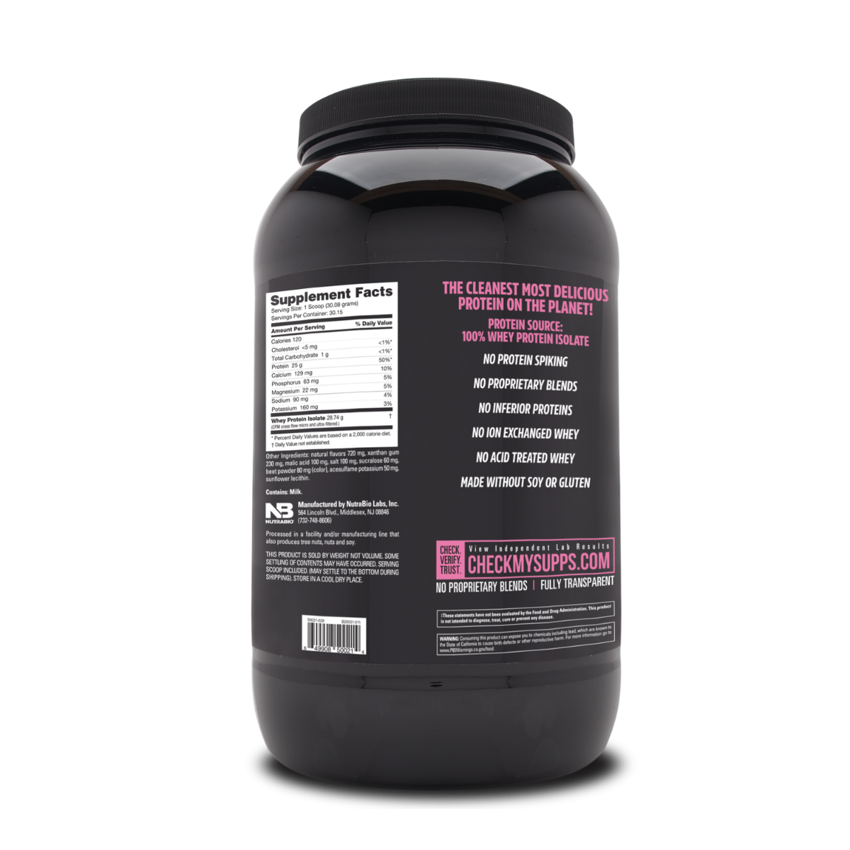 Nutrabio® 100% Whey Protein Isolate este alegerea ideala pentru cei care cauta o sursa de proteine pura si de inalta calitate. Fiecare portie furnizeaza 25 g de proteine pure, obtinute exclusiv din izolat proteic din zer, fara aditivi, umpluturi sau ingrediente artificiale.