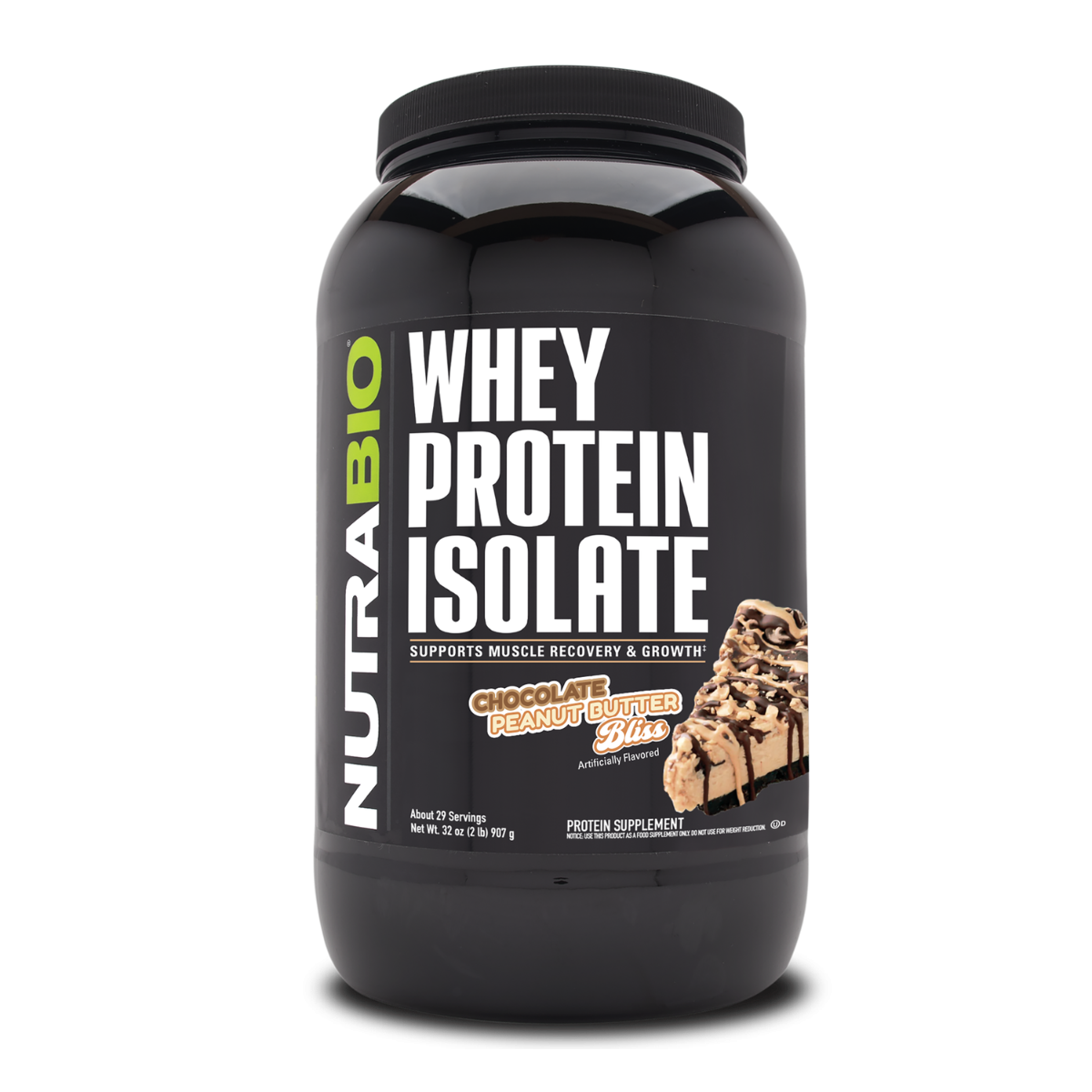 NutraBio Whey Protein Isolate Chocolate Peanut Butter Bliss, Izolat de Proteina din Zer cu Aroma de Ciocolata si Unt de Arahide