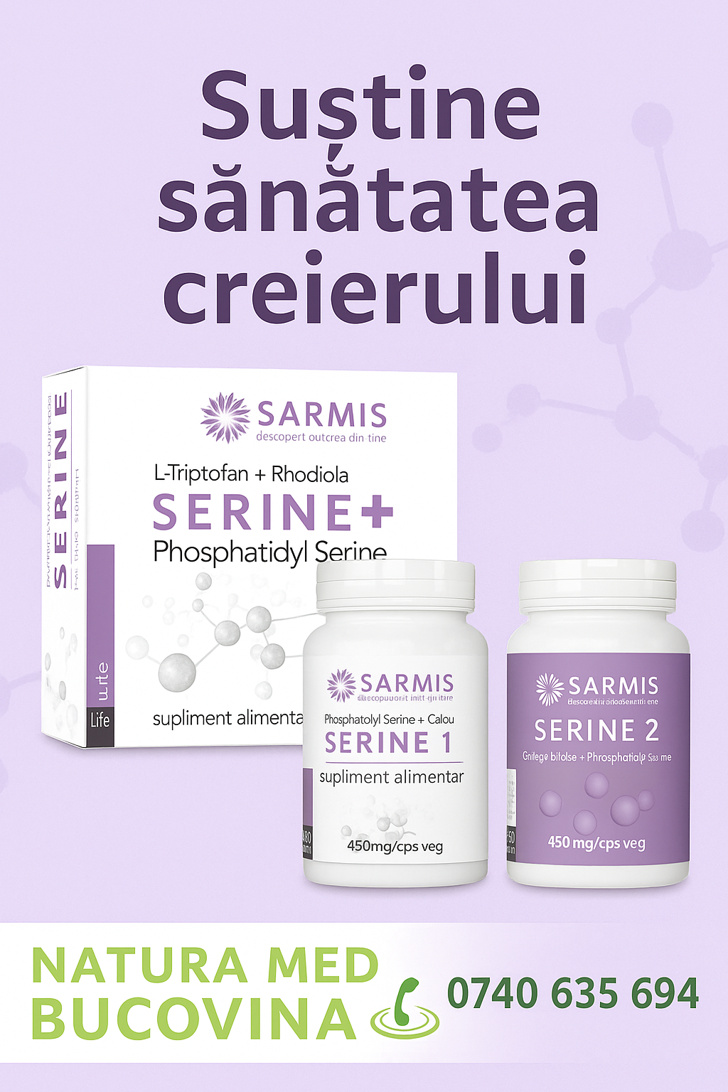 Produsul SERINE 1 este formulat pentru a sprijini sănătatea sistemului nervos, funcțiile cognitive, echilibrul hormonal și sănătatea oaselor. Poate fi util în cazuri de stres, declin cognitiv, tulburări de memorie sau pentru susținerea generală a organismului.