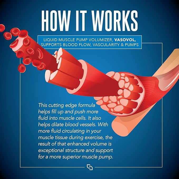 SirenLabs® Vaso Vol™ este un supliment lichid de pre-workout creat pentru a intensifica pomparea musculara, sustine rezistenta si imbunatati fluxul sanguin in timpul antrenamentelor. Cu un gust delicios de fructe de padure si o formula ultra-concentrata, Vaso Vol™ te ajuta sa iti maximizezi performanta si sa obtii rezultate vizibile mai rapid.