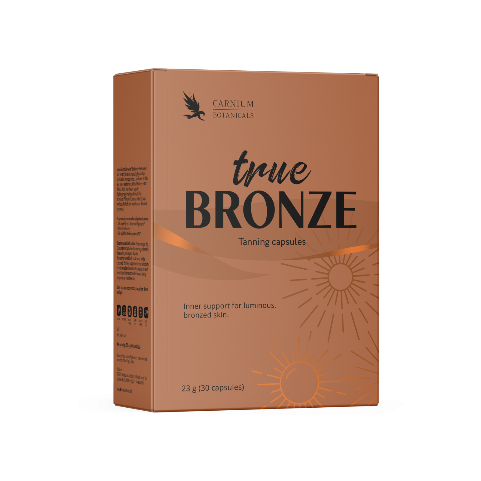 Ten natural și strălucitor, indiferent de anotimp! TrueBRONZE, supliment alimentar, este aliatul tău natural pentru un bronz sănătos, luminos și de durată, pe tot parcursul anului. Datorită combinației atent alese de betacaroten, licopen și astaxantină, susține sănătatea pielii din interior spre exterior. O soluție ideală pentru cei care își doresc un bronz natural, uniform și de lungă durată, precum și o piele îngrijită, fără expunere excesivă la soare sau utilizarea produselor artificiale.